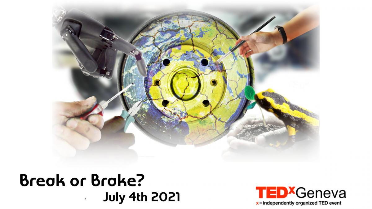“Break or brake?” is the question TEDxGeneva 2021 is inviting you to reflect upon. Break involves a sudden and potentially violent interruption of a continuity, a separation into pieces, a snap... In contrast, Brake involves slowing down or stopping a motion, hindering a process or changing the rhythm to control a situation. This appears a binary situation but, maybe, it is not: we can go beyond such dilemmas and find, imagine, opportunities for societal change.