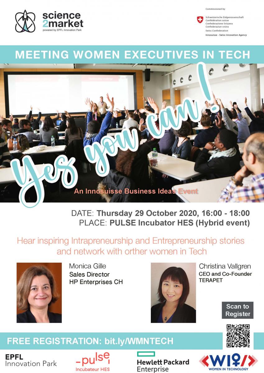 Format: Événement hybride, en physique à Pulse Incubateur HES et en ligne sur https://bit.ly/WMNTECH (nombre de places illimité)