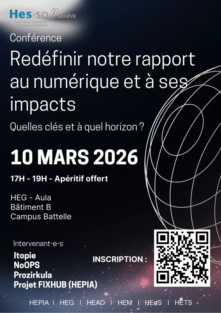 Dans le cadre de la digital clean up week, la HES-SO Genève organise une conférence publique sur le numérique et ses impacts sociaux, environnementaux et éthiques.