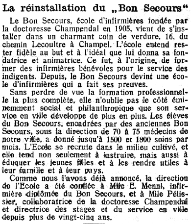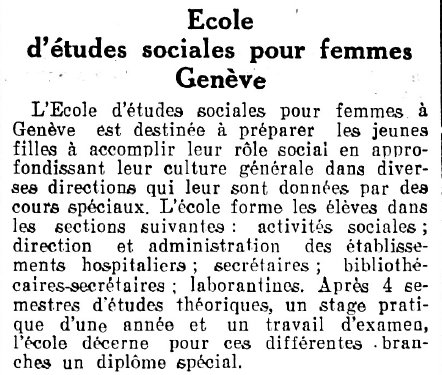 A cette même époque, les jeunes femmes pouvaient suivre des cours à l’Ecole d’Etudes sociales pour femmes ou à l’Ecole genevoise d’infirmières, appelée également l’Ecole du Bon Secours.
