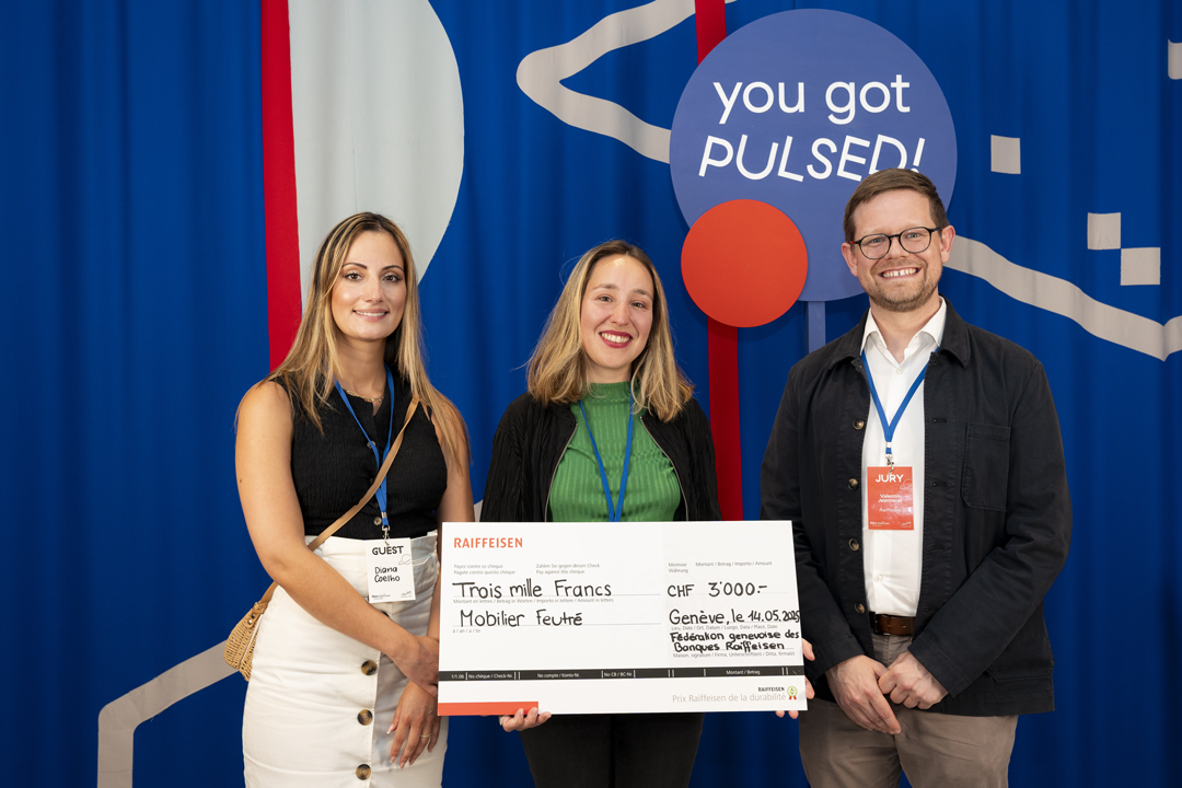 - Photo du Prix Raiffeisen de la Durabilité remporté par le projet Mobilier Feutré, fondé par Louise Plassard