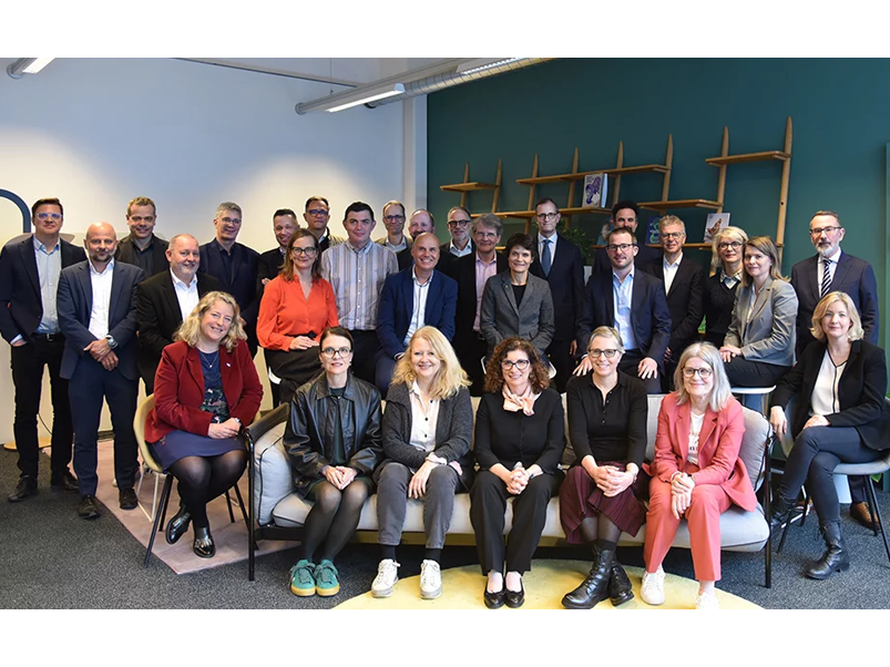Photo 2: La Rectrice de la HES-SO Luciana Vaccaro (assise, au milieu) avec les directrices générales et directeurs généraux des hautes écoles, ainsi que les responsables de domaines.
