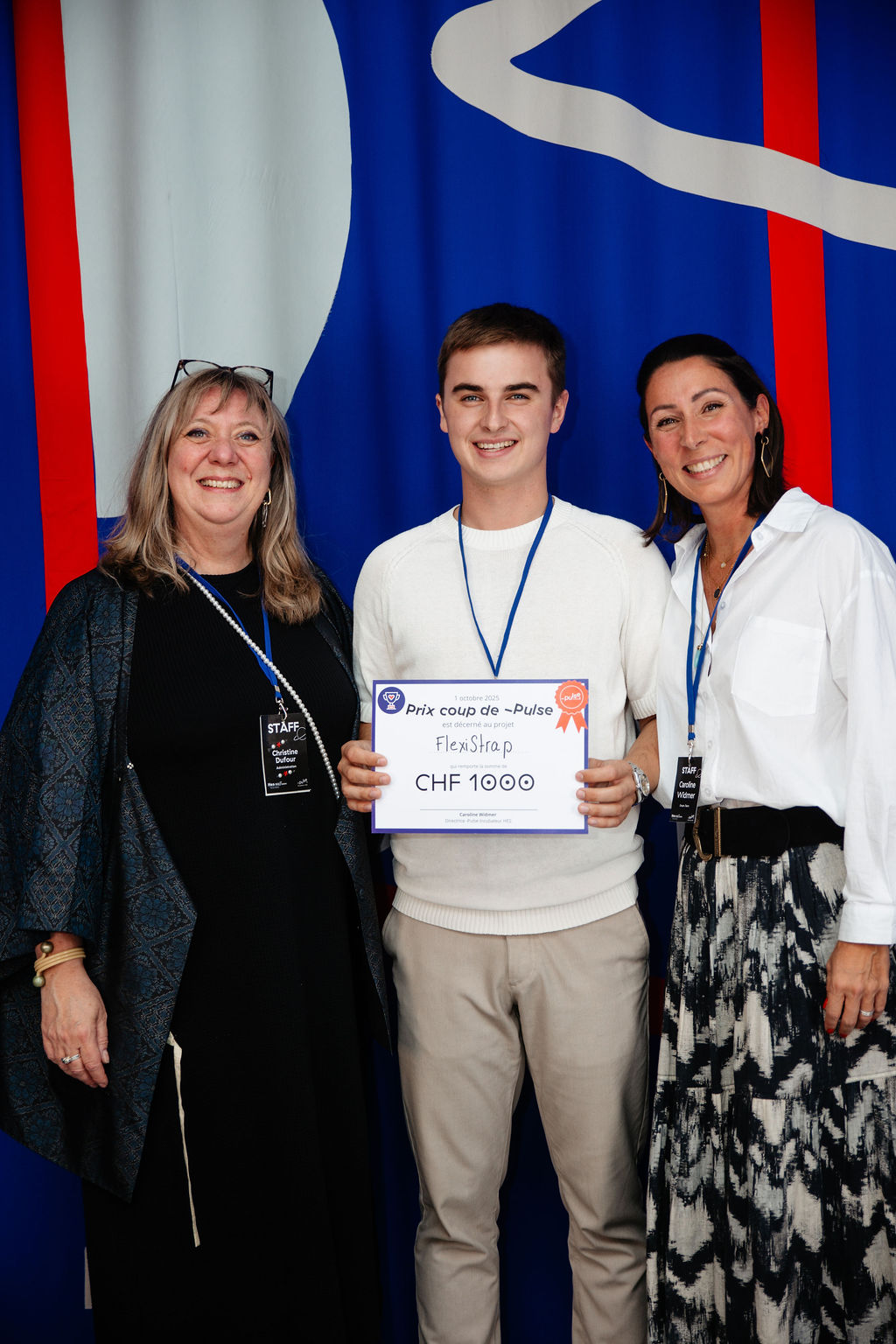 - Prix Coup de Pulse - Flexistrap - de g. à dr. : Christine Dufour (Pulse), Sébastien Pasquier (Flexistrap), Caroline Widmer (Pulse)