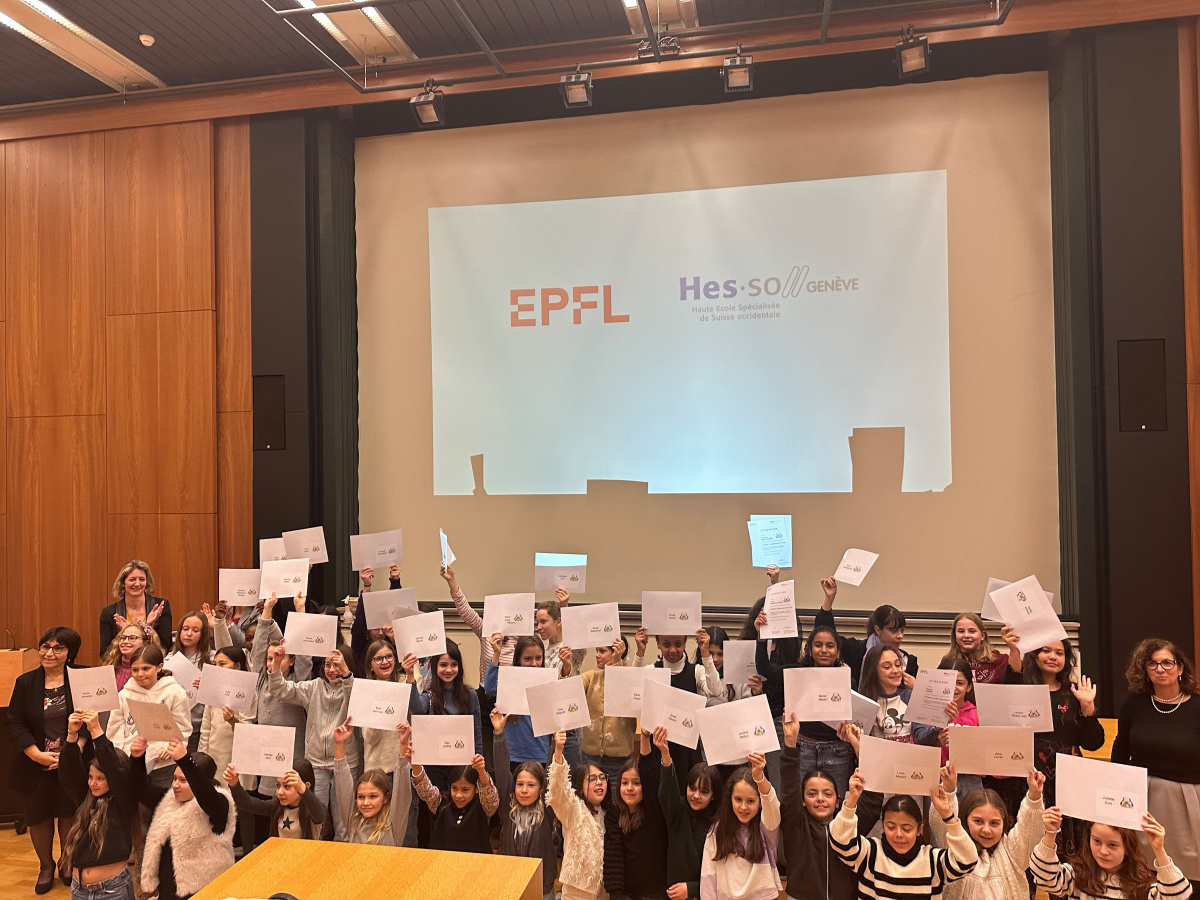 Encourager les jeunes filles à s’intéresser à l’informatique ? C’est le but des cours organisés conjointement par l’EPFL et la HES-SO Genève, destinés aux 9-11 ans. L’édition 2023 de « Internet & Code pour les filles » a une nouvelle fois remporté un grand succès, comme en a témoigné le nombre important de personnes présentes à la cérémonie de clôture, qui s’est tenue le samedi 16 décembre à la Haute école de gestion de Genève.