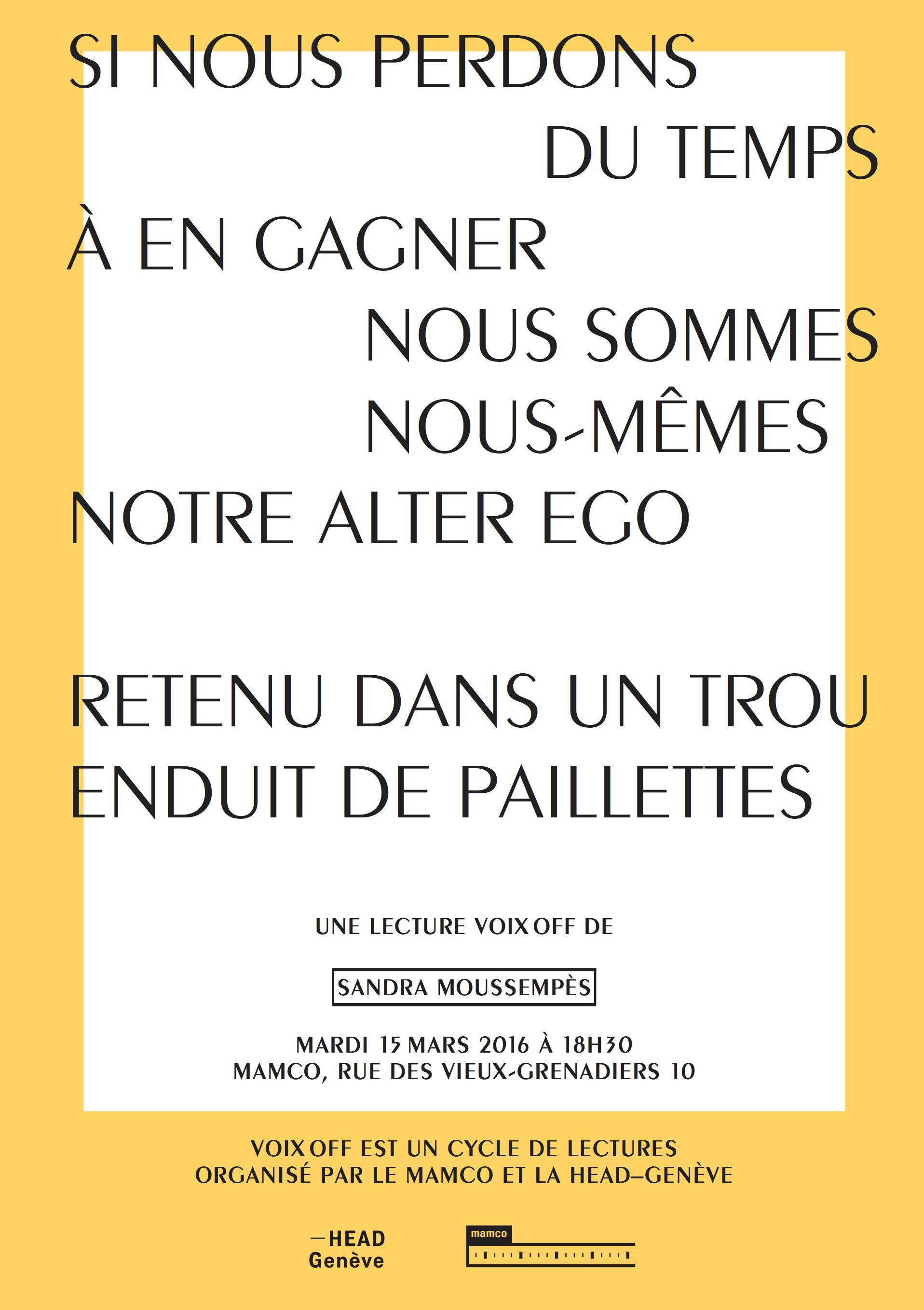 Si nous perdons du temps à en gagner nous sommes nous-mêmes notre alter ego retenu dans un trou enduit de paillettes.