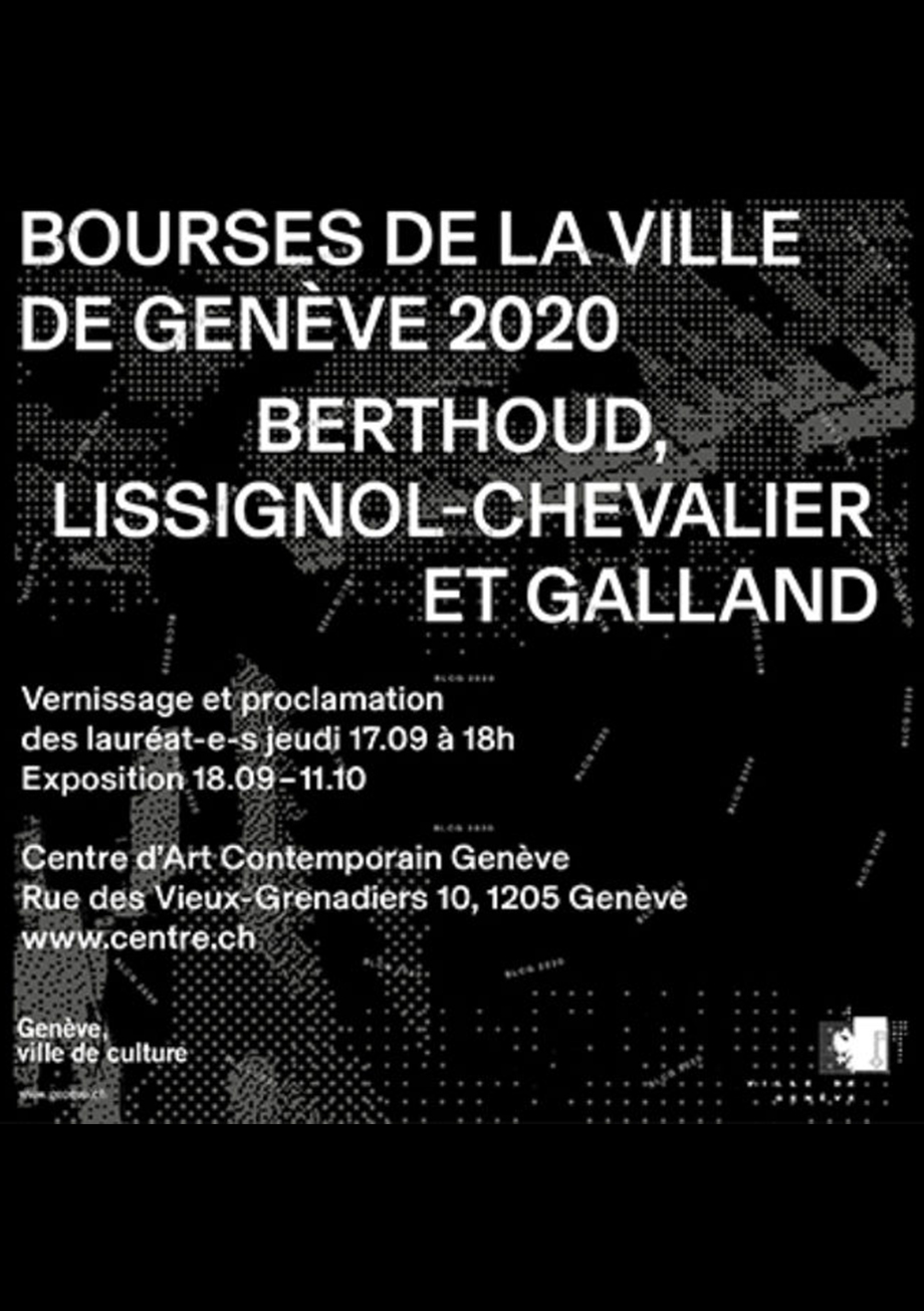 Exposition des oeuvres de 12 artistes finalistes en concours pour les Bourses de la Ville de Genève destinées à soutenir la jeune création contemporaine dans les domaines des arts visuels et des arts appliqués.