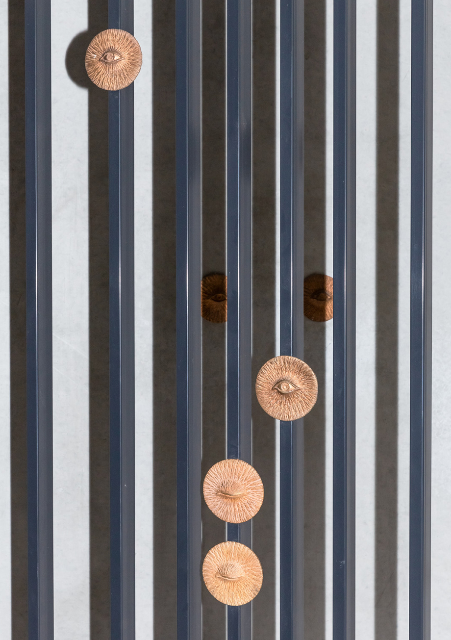 « Après avoir réfléchi aux fonctions de base (fermer/ouvrir/protéger) d'un portail, j'ai commencé à réfléchir aussi à la signification symbolique d'un passage : un lieu de connexion entre deux destinations, un "espace de transition" à courte distance, un endroit où les choses se séparent et se relient, et comme son nom l'indique déjà : "un passage". Ces fonctions m'ont fait penser à celles similaires de l'œil qui est aussi un symbole très ancien de l'imaginaire collectif humain. L'œil égyptien d'Horus et de Râ, le "Nazar Boncuk" grec et turc, le troisième œil de la culture indienne, parmi beaucoup d'autres.
