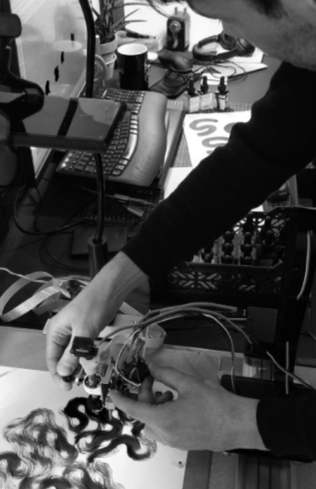 Pour cette première édition, Arnaud Pfeffer, designer industriel et artiste numérique, reviendra sur sa pratique et son approche du dessin robotique. Au cours de sa formation en design et ingénierie, il a développé une affinité pour le dessin numérique, les processus industriels et les outils de prototypage rapide (CNC, découpe laser) utilisés dans la création industrielle. De là découle également son approche plastique à partir des lignes présentes dans les formes du quotidien, qu'il interprète avec des logiciels de conception 3D. Inspiré par le mouvement "maker", sa recherche passe par le détour, il crée des liens entre le processus artisanal et industriel, avec une approche expérimentale dans laquelle le processus de création et aussi intéressant que l'objet créé.