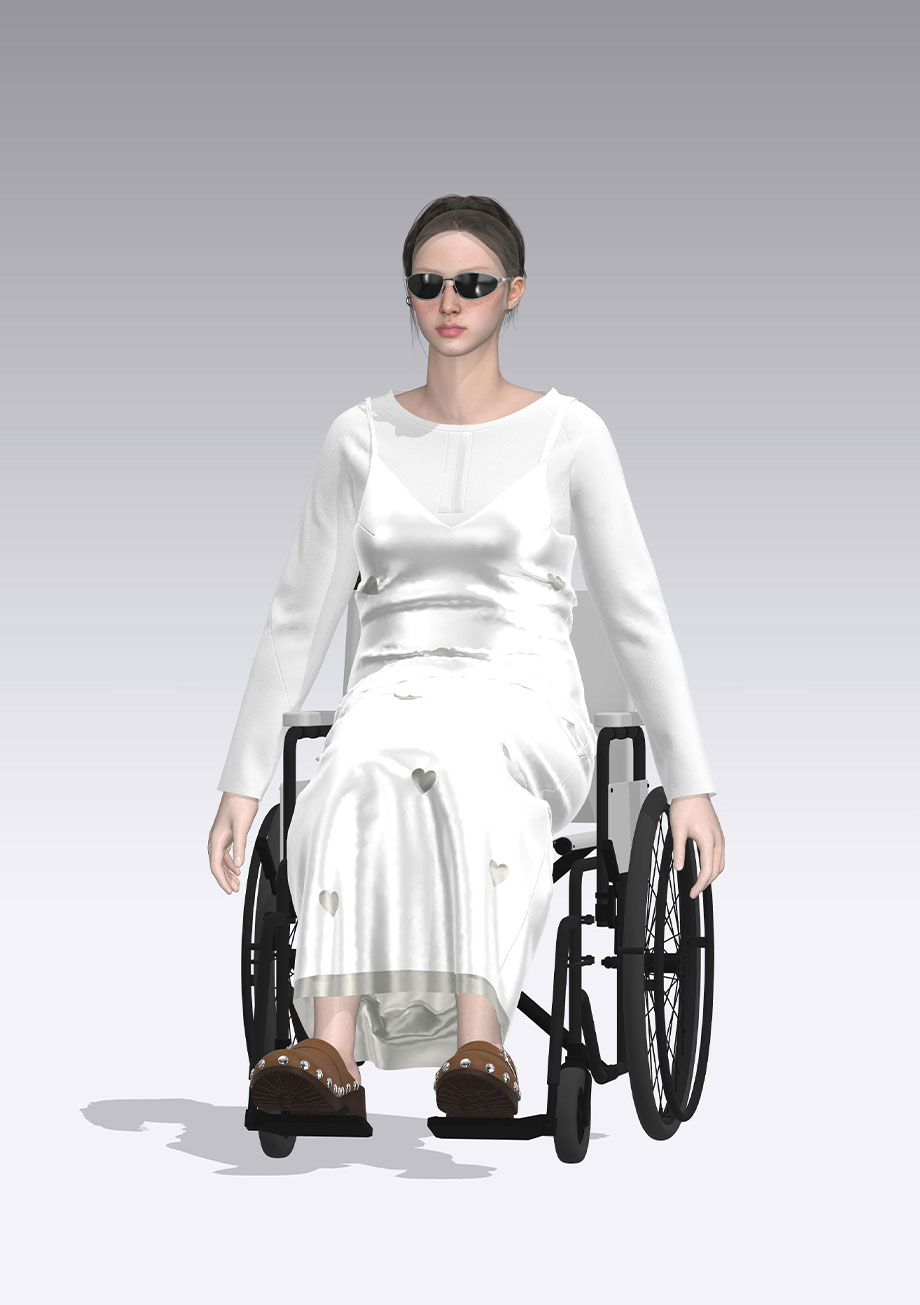 Coordinated and co-designed with the help of Victor Prieux, freelance designer at the Visual (Archives™) Society studio and artistic collaborator in the fashion department at HEAD Geneva, the project began with a visit to Nottwil (CF Photos), the headquarters of the Swiss Paraplegic Foundation. This immersion provided an opportunity to gain a better understanding of the specific needs and challenges of paraplegics, and to design garments adapted to their day-to-day requirements.