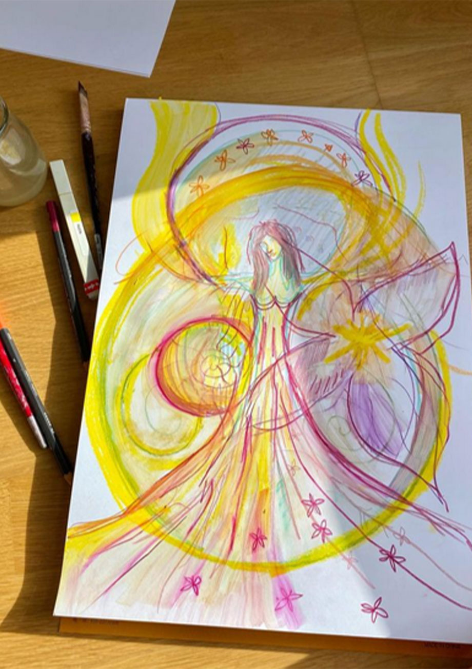 Ophélie Couelle aspires the viewer to experience a sensory world where everything is interdependent, conscious, alive and intertwined. Her drawings, watercolors and paintings often depict floating imaginary worlds, ethereal images, beyond the appearances of the physical world that bring a sense of reverie. Her works are similar to formulas or magic spells, with self-contained arrangements of pigments, lines of space and movement. Ophelie Couelle likes to create hybrid forms, between plant and animal shapes.