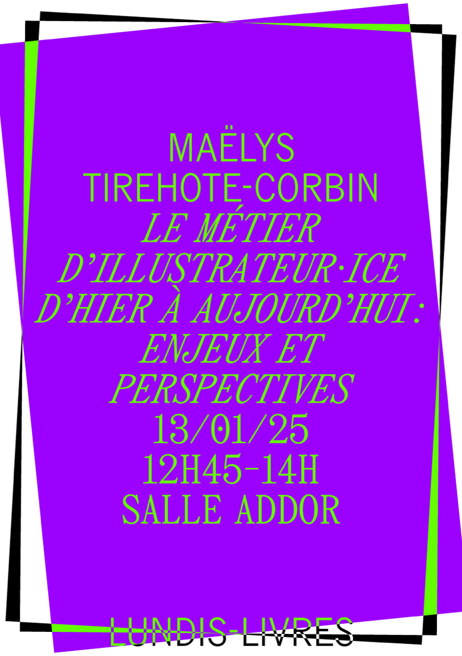 As part of the LUNDIS - LIVRES programme, we are delighted to invite you to meet Maëlys Tirehote-Corbin, who will be presenting Le métier d'illustrateurice d'hier à aujourd'hui : enjeux et perspectives.