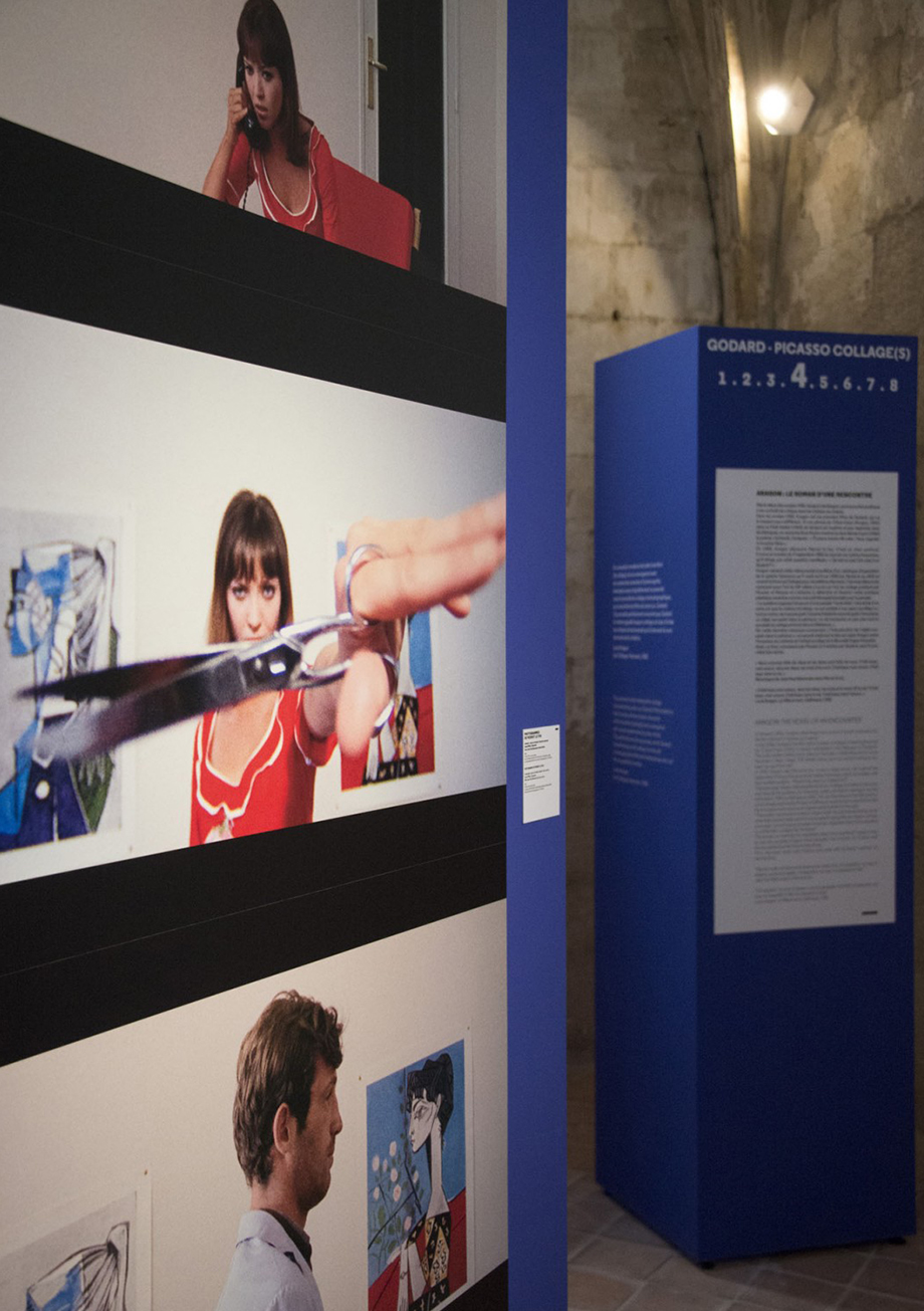 L’exposition proposait au moyen de peintures, de dessins, de documents et de collages - pratique commune aux deux artistes - des relations secrètes mais décisives entre l’œuvre du peintre et celle du cinéaste. Ils se sont tous deux retournés sur l’histoire de leur art : Picasso visite Velasquez, Ingres, Goya, Manet. Quant à Godard, il accomplit à la fin du 20ème siècle son grand œuvre, intitulé Histoire(s) du cinéma.