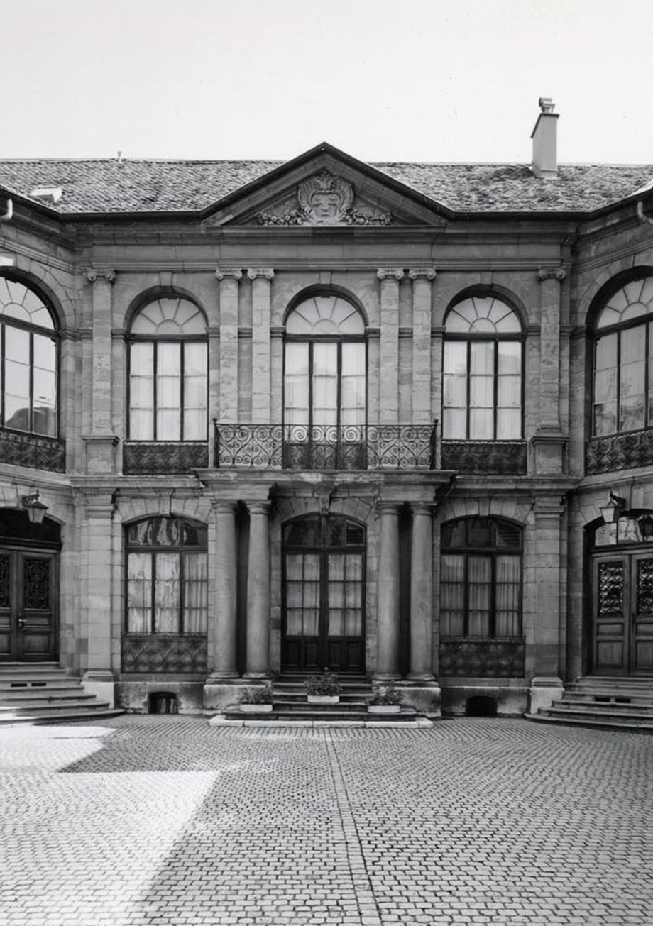 L’hôtel Buisson, premier exemple genevois d’une résidence à la française, dite « entre cour et jardin », a déjà fait couler beaucoup d’encre. La découverte, il y a une quarantaine d’années, d’un contrat de construction, signé le 23 mars 1699, a permis à Barbara Roth-Lochner et Livio Fornara de corriger la datation traditionnelle de cet édifice (1708) et de confirmer l’origine parisienne de ses plans. Leur article, paru en 1982, a eu le mérite d’attirer l’attention sur la ressemblance quasi parfaite entre la façade d’entrée de l’hôtel Buisson et celle de l’hôtel de Lorge édifié à Paris par l’agence de Jules Hardouin-Mansart en 1697-1698. S’appuyant sur ces données, André Corboz a publié deux ans plus tard une nouvelle étude dans laquelle il s’est livré à un jeu de comparaisons pour insister sur le caractère novateur de l’hôtel genevois et conclure que la paternité de ses plans revient effectivement à l’agence de Hardouin Mansart.