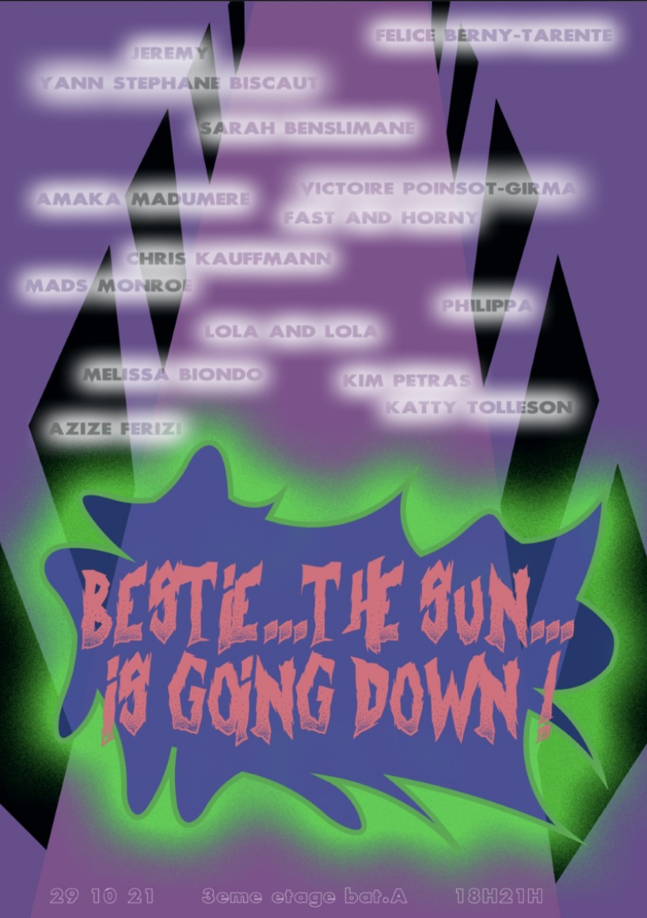 Artistes exposé-e-x-s:Felice Berny-Tarente, Jeremy, Yann Stéphane-Biscaut, Sarah Benslimane, Victoire Poinsot-Girma, Amaka Madumere, Fast And Horny (Antoine Weil), Chris Kauffmann, Mads Monroe, Lola And Lola, Philippe, Mélissa Biondo, Kim Petras, Katty Tolleson, Azize Ferizi