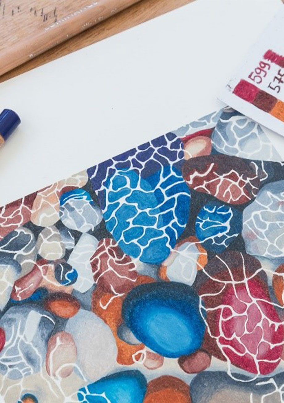 L'Espace créatif Caran d'Ache devient le théâtre enchanté des deux alumnae, Diana Vlasa et Lynn Fejer: les dessins exécutés avec les crayons Luminance 6901 s'entrelacent avec les installations à la gouache, conférant aux murs des arcades une aura bleutée envoûtante. Dans cette expérience collective, chaque œuvre se dévoile avec grâce et invite les visiteurs à plonger dans un univers artistique unique rythmé par les flots des souvenirs et les reflets aquatiques.