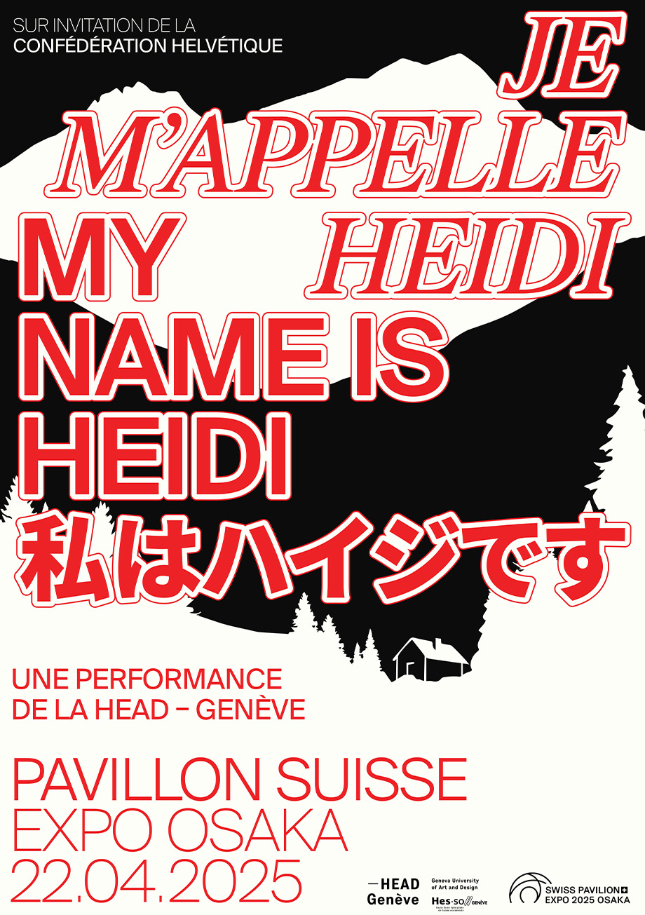 La Haute école d’art et de design de Genève (HEAD – Genève) a été choisie par Présence Suisse, rattachée au Département fédéral des affaires étrangères (DFAE), pour porter l’excellence de la créativité et de l’éducation suisse lors de la Journée nationale du Pavillon suisse à l’Expo 2025 d’Osaka. Le 22 avril 2025, la HEAD – Genève présentera Je m’appelle Heidi, une performance immersive combinant design et cinéma. À travers une approche contemporaine et innovante, cette œuvre réinvente la figure emblématique de Heidi, symbole intemporel de la culture suisse, pour l’inscrire dans une lecture actuelle.