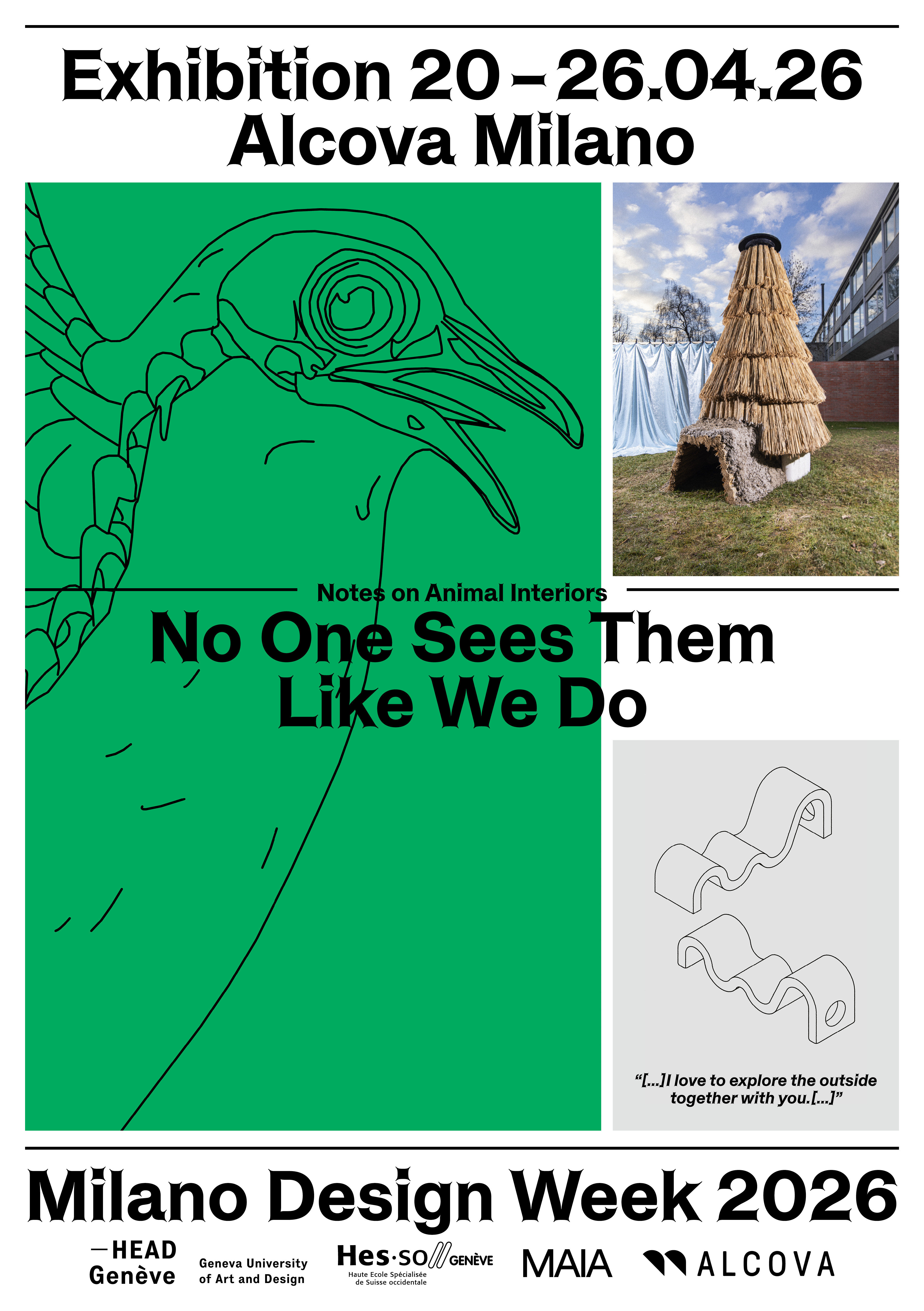 Feast for Rats overturns the usual hierarchies of domestic space by inviting the rat to the table. An omnipresent yet systematically rejected species, the rat becomes a legitimate guest, participating in an act of shared conviviality. Composed of bread, seeds, and edible matter, the table shifts from a site of consumption to a space of encounter, intimacy, and negotiation. By placing the rat at the center of a shared ritual, the project carried out by the collective LA DALLE (Julie Chavaz and Angélique Kuenzle) and the student Matilde Arletti questions boundaries of disgust, hospitality, and equality, proposing sharing as a first gesture of interspecies recognition.
