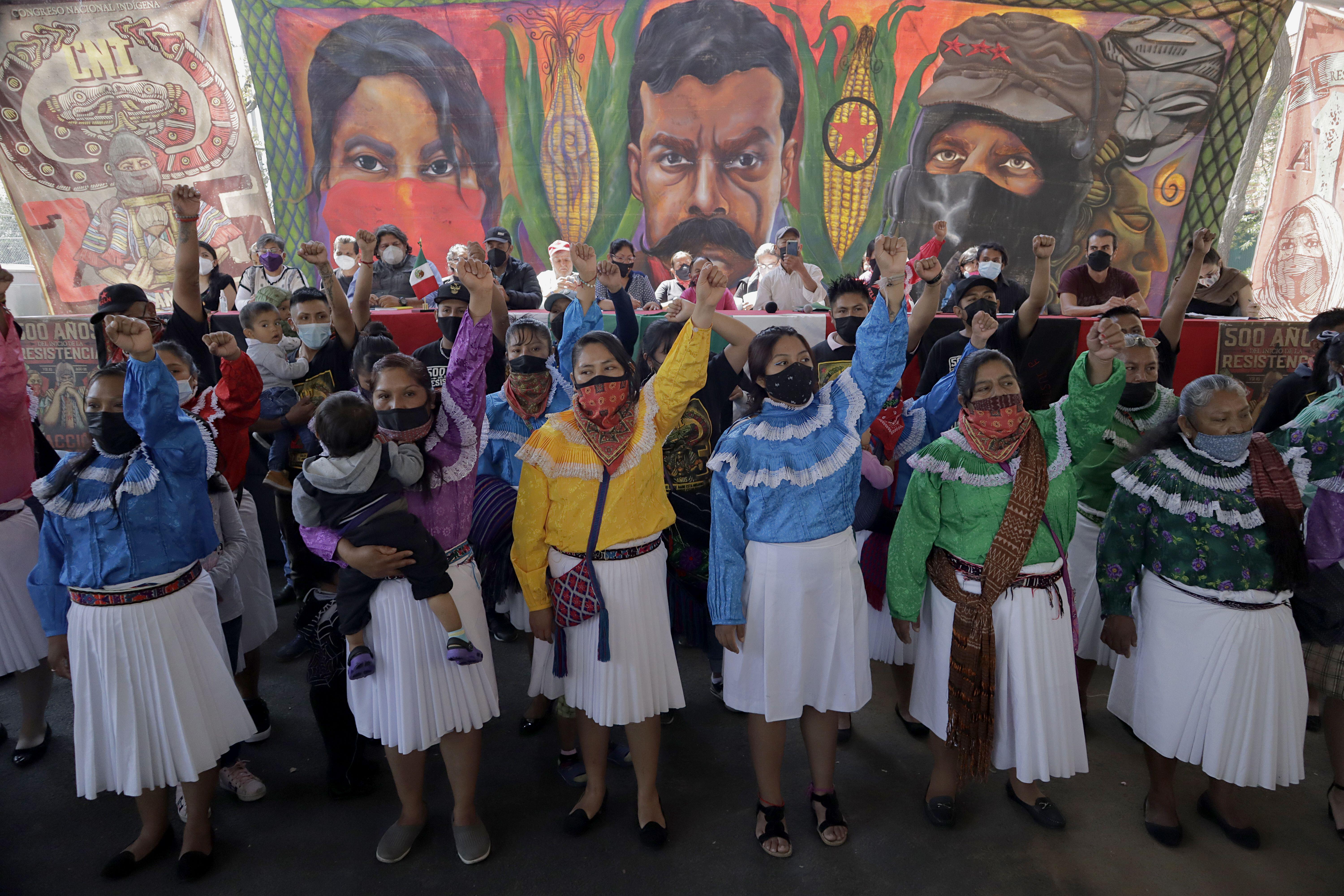 Women from Otomí community who have occupied the National Institute of Indigenous Peoples in Coyoacán, Mexico City, October 2021. Photo: Gerardo Vieyra. License: Alamy.