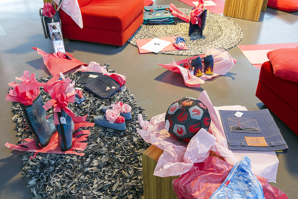 Questioning the apparent paradox of a textile of standardisation on the one hand and its protean appropriation on the other, as well as the cultural issues raised by vulgar objects in the field of design, Jeansdinge multiples the angles to offer a kaleidoscopic vision on denim.