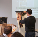 Afin de montrer combien la maîtrise de l'identité stylistique d'une marque, et notamment la façon dont celle-ci se manifeste à travers des codes qui lui sont propres, Madame Zappieri a présenté des success stories des Maisons Chanel, Hermès, Burberry ou Louis Vuitton. Une sensibilité à la dimension esthétique, donc, mais qui doit être complétée par une rigoureuse planification du processus d'innovation, subdivisé en étapes régies par des équipes managériales dédiées, ainsi qu'un certain nombre de contraintes et priorités qui doivent permettre de mener efficacement le processus qui part de l'idée pour aboutir au produit. Les participants ont ensuite eu l'opportunité de travailler sur une étude de cas qui leur a permis de comprendre comment se déroulent ces différentes phases qui ponctuent le développement d'une stratégie d'extension de marque.