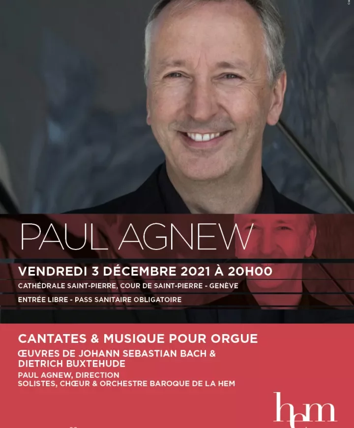 Paul Agnew remplace au pied levé Ton Koopman qui a été contraint d'annuler sa venue suite au durcissement des conditions d’entrée en Suisse pour les résidents des Pays-Bas. Il ne pourra pas se produire à la Cathédrale Saint-Pierre avec l’Orchestre baroque de la HEM ce vendredi 3 décembre 2021.