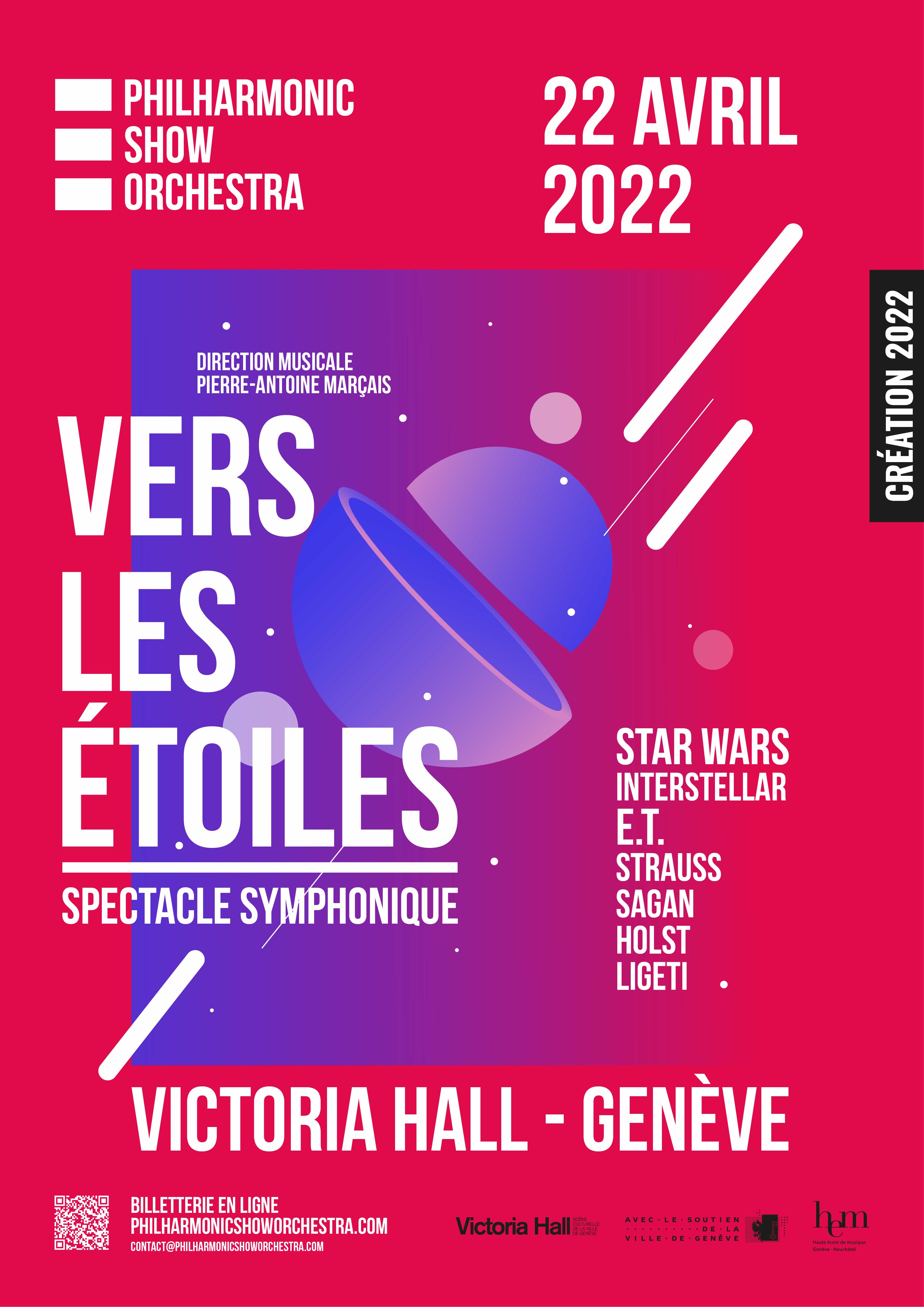 Instrumentistes, chanteurs, compositeurs, théoriciens, des professionnels sortant des Hautes écoles de musique de Suisse Occidentale se réunissent autour d’un projet innovant et promettent un voyage musical interstellaire et hors normes, un spectacle symphonique son et lumière qui revisite les grands classiques des musiques à l’image autour de l’espace, des planètes et de l’infini pour vous emmener… vers les étoiles !