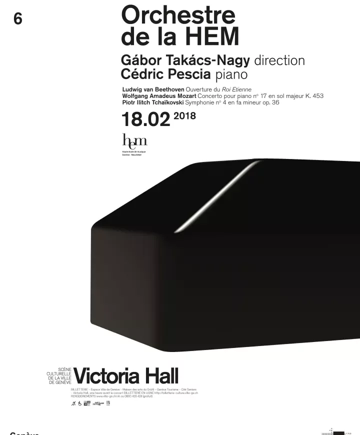 Victoria HallRue du Général Dufour 141204 GenèveBILLETTERIE DE LA VILLE DE GENÈVE : billetterie-culture.ville-ge.chLocation : Espace Ville de Genève, Pont de la Machine, Grütli, Genève Tourisme, Cité Seniors