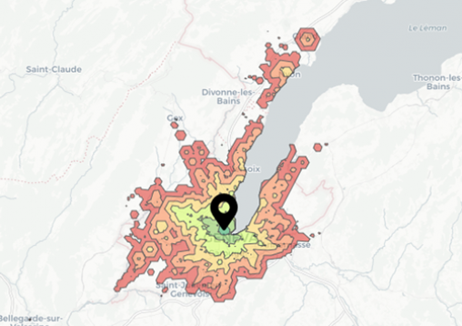 L’application Isochrones, développée à l’HEPIA en partenariat avec la RTS, permet de visualiser l’étendue des endroits accessibles depuis un point précis, dans...