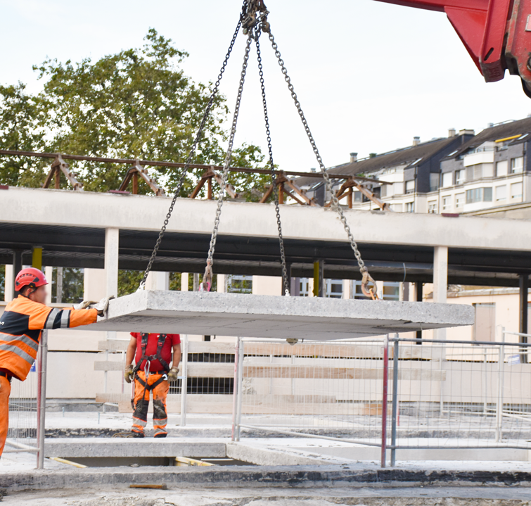 Levage d’une dalle de béton sciée, EPFL, 2023. © Célia Küpfer