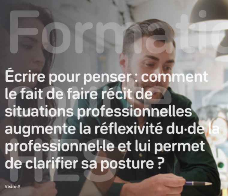 Cet ouvrage a inspiré la formation courte : Écrire pour penser Comment le fait de faire récit de situations professionnelles augmente la réflexivité du·de la professionnel·le et lui permet de clarifier sa posture? – Le centre de formation continue HES Santé-Social Genève, VisionS réunit les forces vives de la Haute école de santé et de la Haute école de travail social au sein d’un même espace dédié à la formation continue Hes-so Genève.