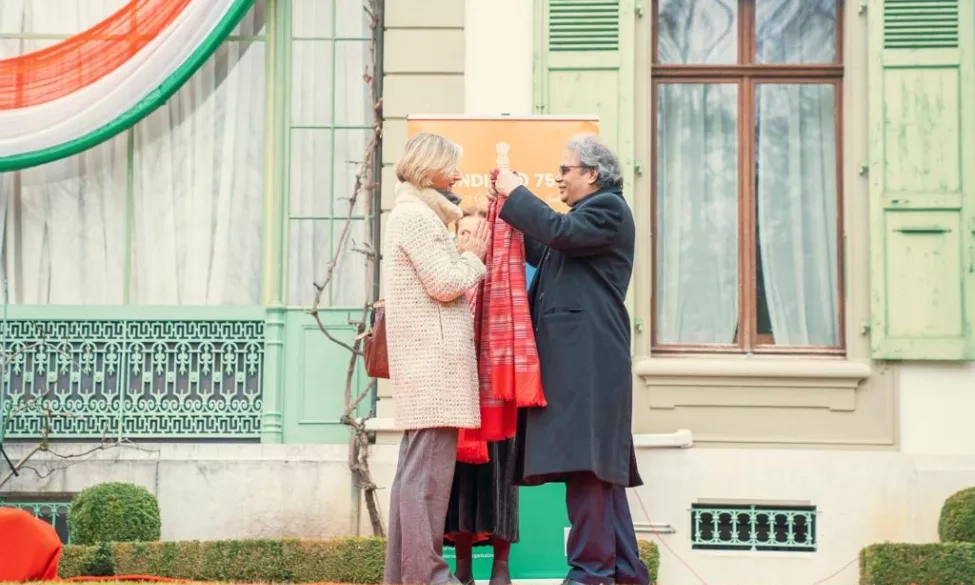 Le 26 janvier, à l'occasion de la célébration de la fête nationale indienne et du 75ème anniversaire de l'Indépendance de l'Inde, Joëlle Libois, directrice de la HETS, a été honorée pour sa contribution et ses travaux en lien avec ce pays. Au cours de la cérémonie, qui s'est déroulée à la India House à Chambésy en présence de représentants de la communauté indienne de Genève, Madame Libois a reçu un châle traditionnel des mains de S.E. Monsieur Indra Mani Pandey, représentant permanent de l'Inde auprès des Nations Unies à Genève.