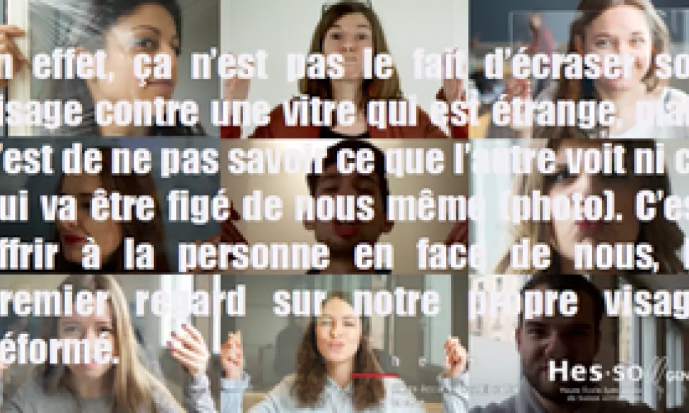« En effet, ça n’est pas le fait d’écraser son visage contre une vitre qui est étrange, mais c’est de ne pas savoir ce que l’autre voit ni ce qui va être figé de nous-même (photo). C’est offrir à la personne en face de nous, le premier regard sur notre propre visage déformé. » Réalisée par les étudiant-e-s et enseignant-e-s du module D6 « Pensée critique », cette expo est inspirée du concept d’ « étranger radical » de Bernhard Waldenfels.