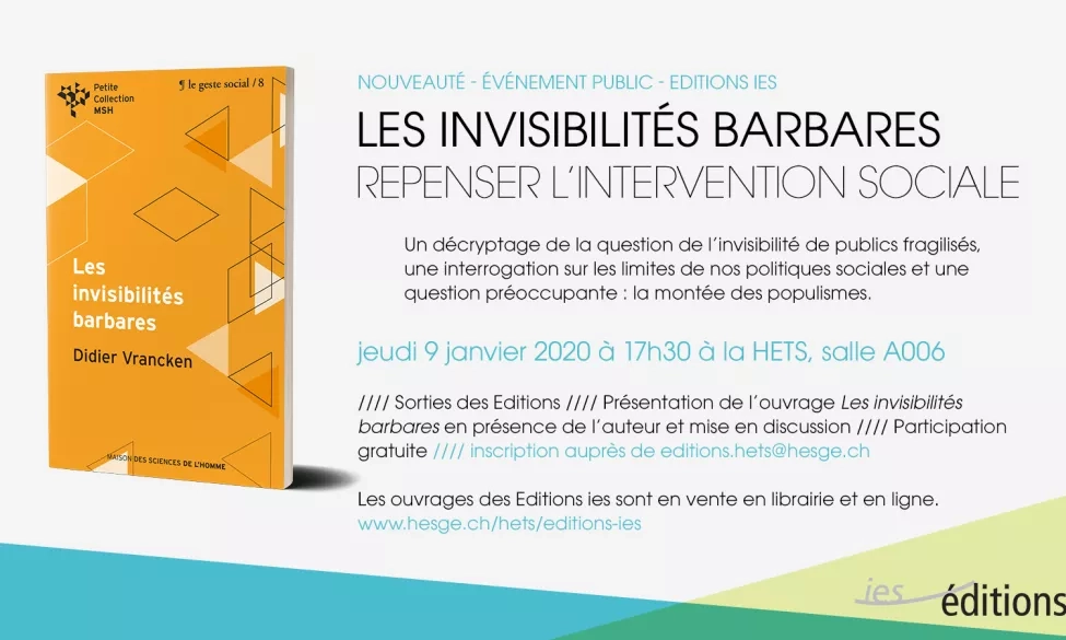 //// Sorties des Editions //// Présentation de l’ouvrage Les invisibilités barbares en présence de l’auteur et mise en discussion //// Participation gratuite //// inscription auprès de editions.hets@hesge.ch