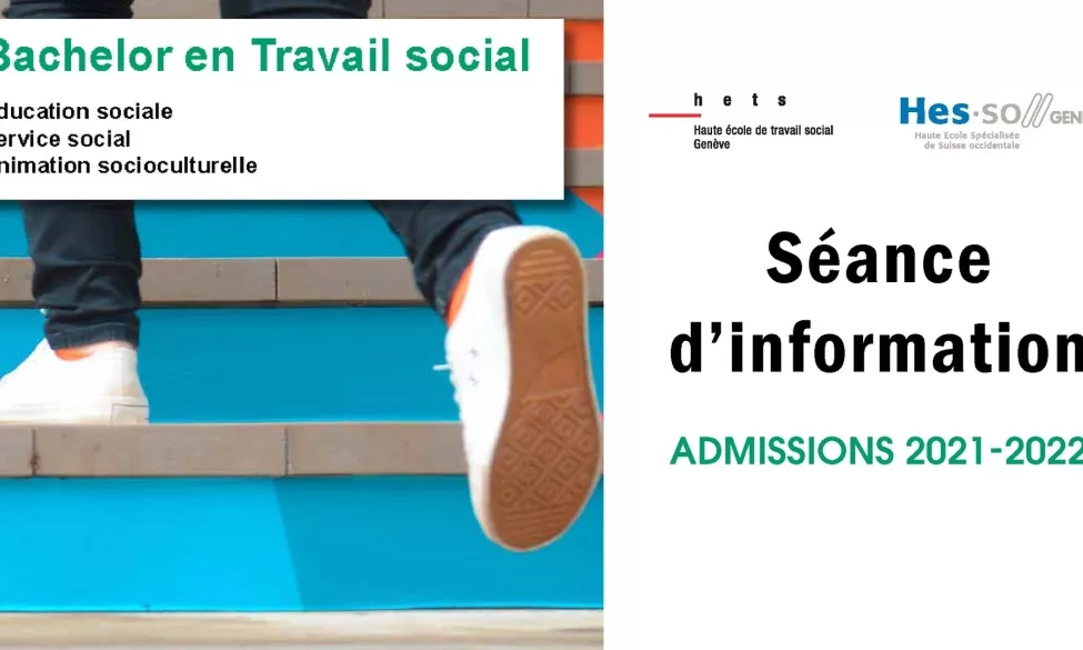 La participation à une séance d'information est fortement recommandée avant le dépôt du dossier de candidature. Venez découvrir les conditions et la procédure d'admission pour le Bachelor en Travail Social et poser toutes vos questions! La séance a lieu en visioconférence. Inscription obligatoire d'ici au 13 juin 2021 en suivant ce lien.