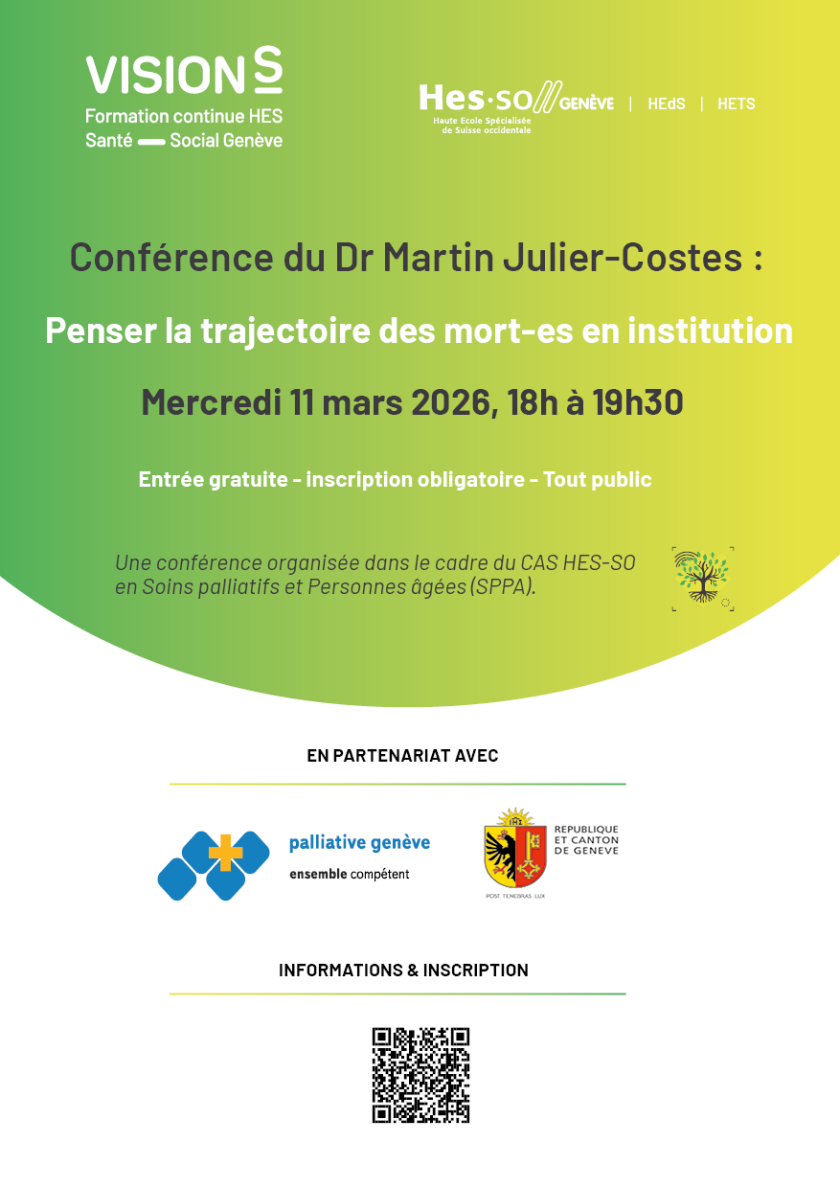 Cette conférence s’inscrit dans un processus de formation continue pour les étudiant-es du CAS HES-SO SPPA. Cette formation, ouverte aux professionnel-les titulaires d’un diplôme bachelor en Santé HES ainsi qu'aux professionnel-les exerçant dans le domaine des soins palliatifs, vise à renforcer leurs compétences afin d'offrir des soins palliatifs adaptés et centrés sur la personne.